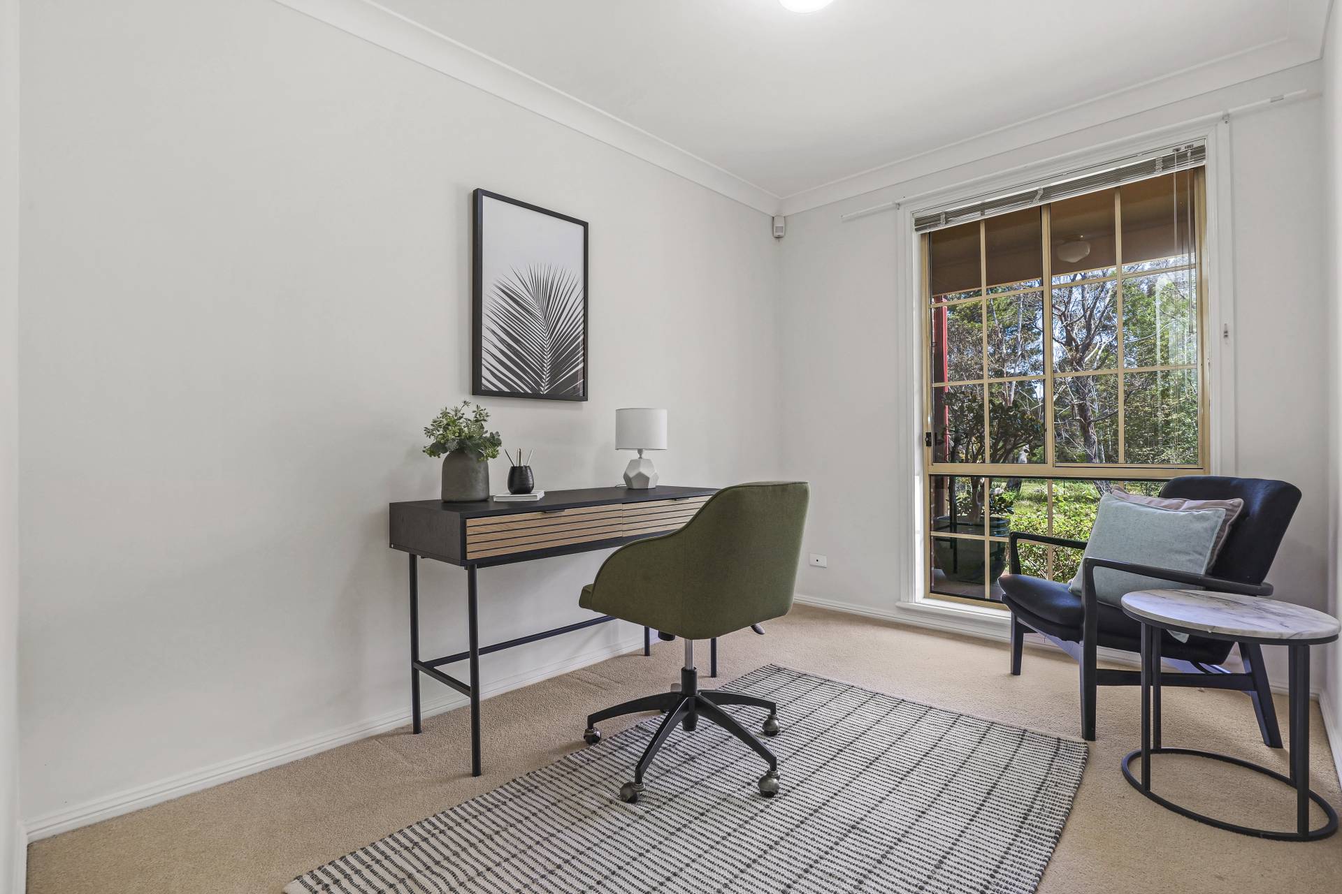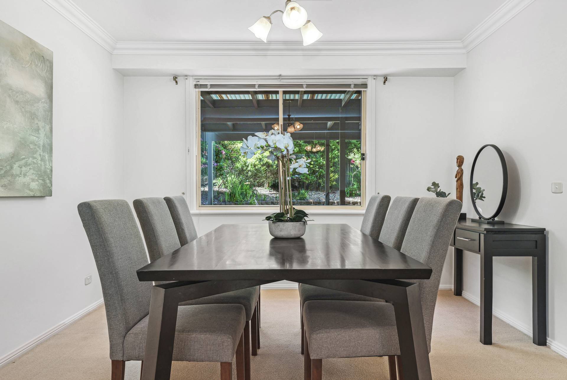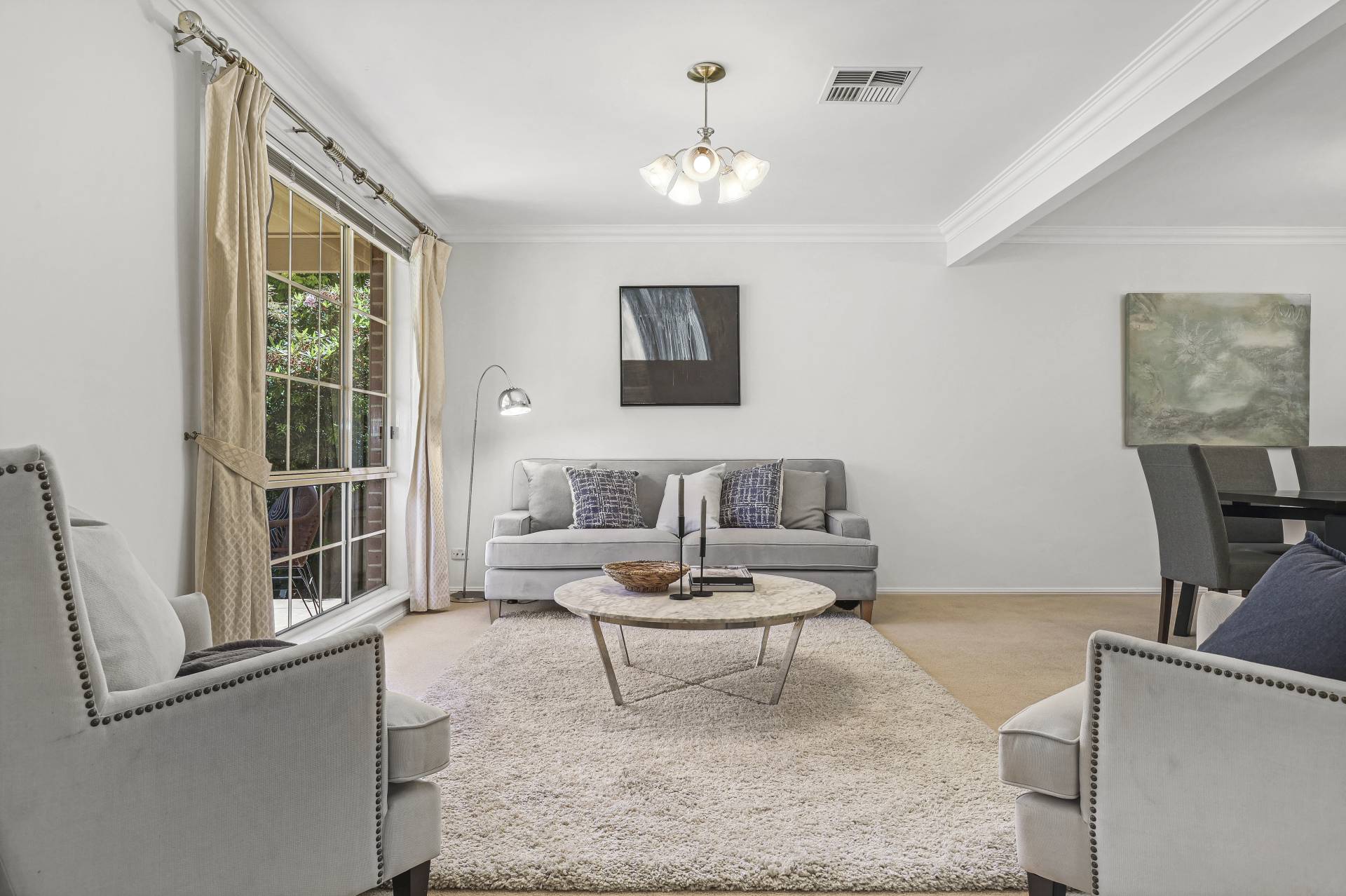 -    Formal living/dining with large windows enjoying a leafy outlook