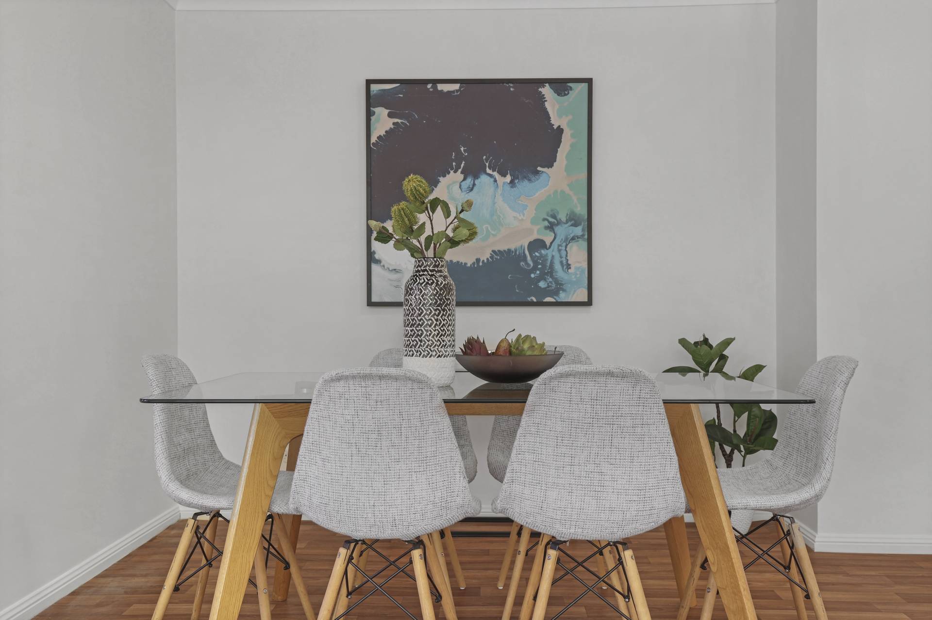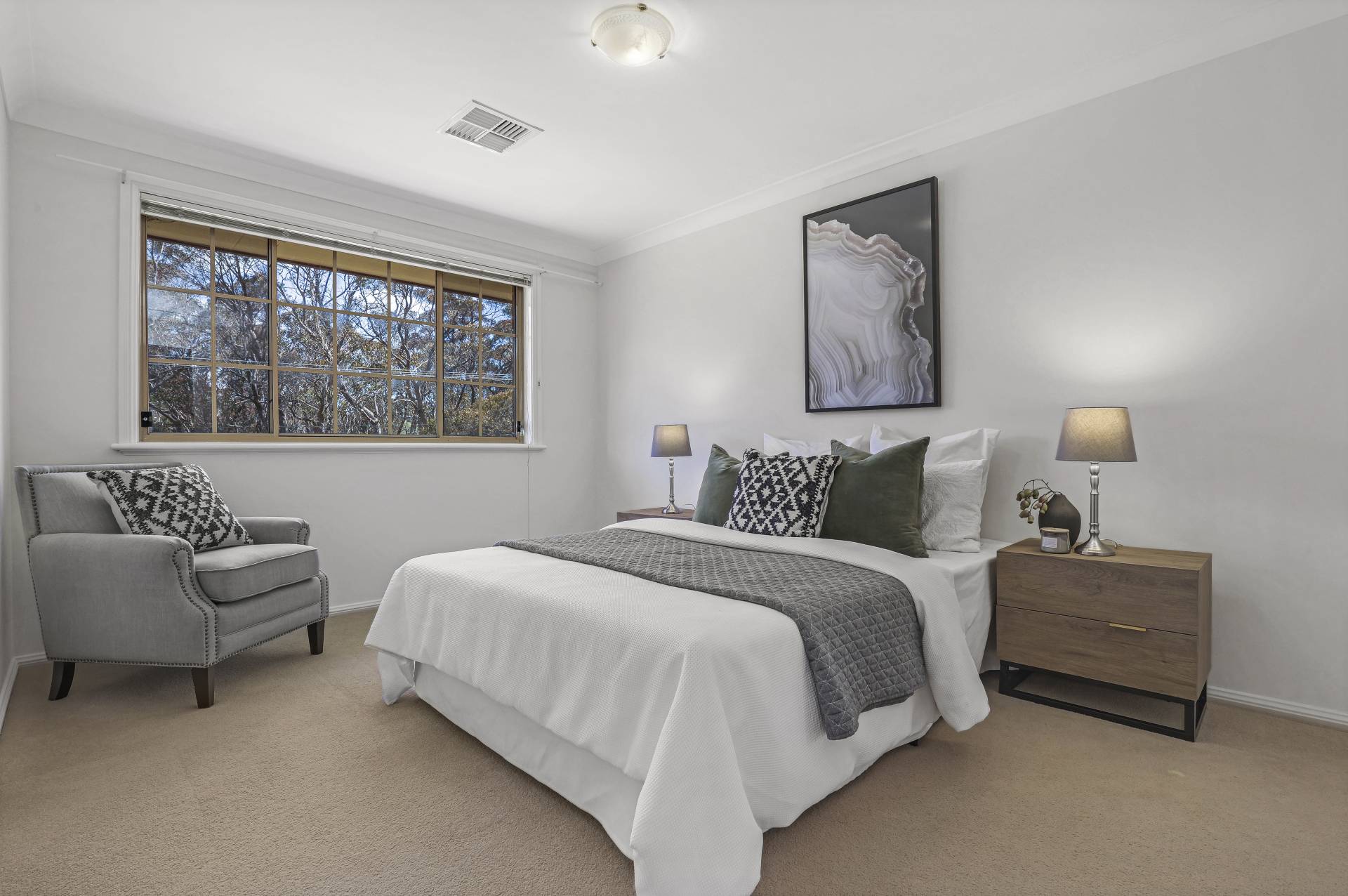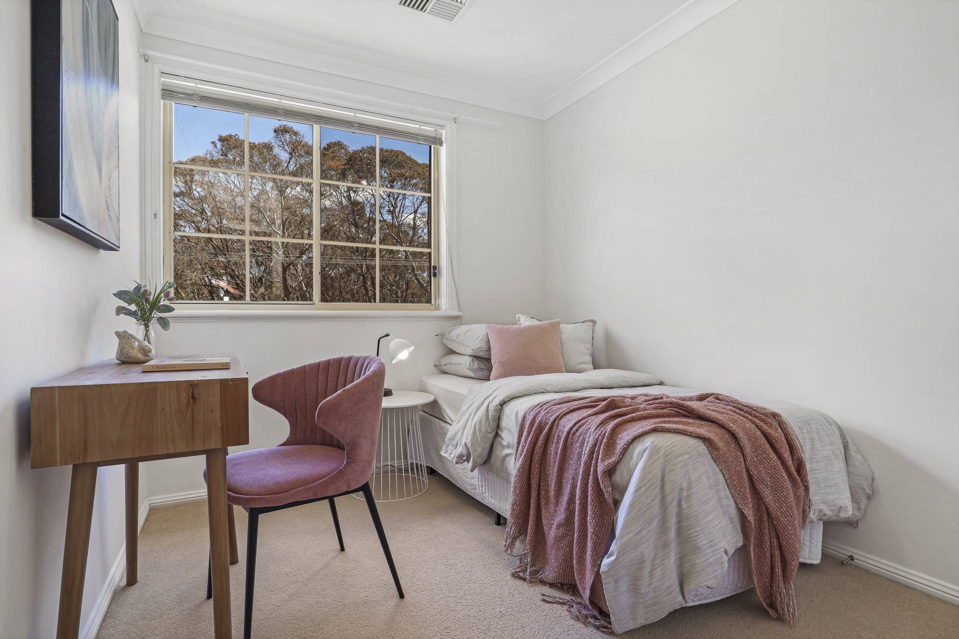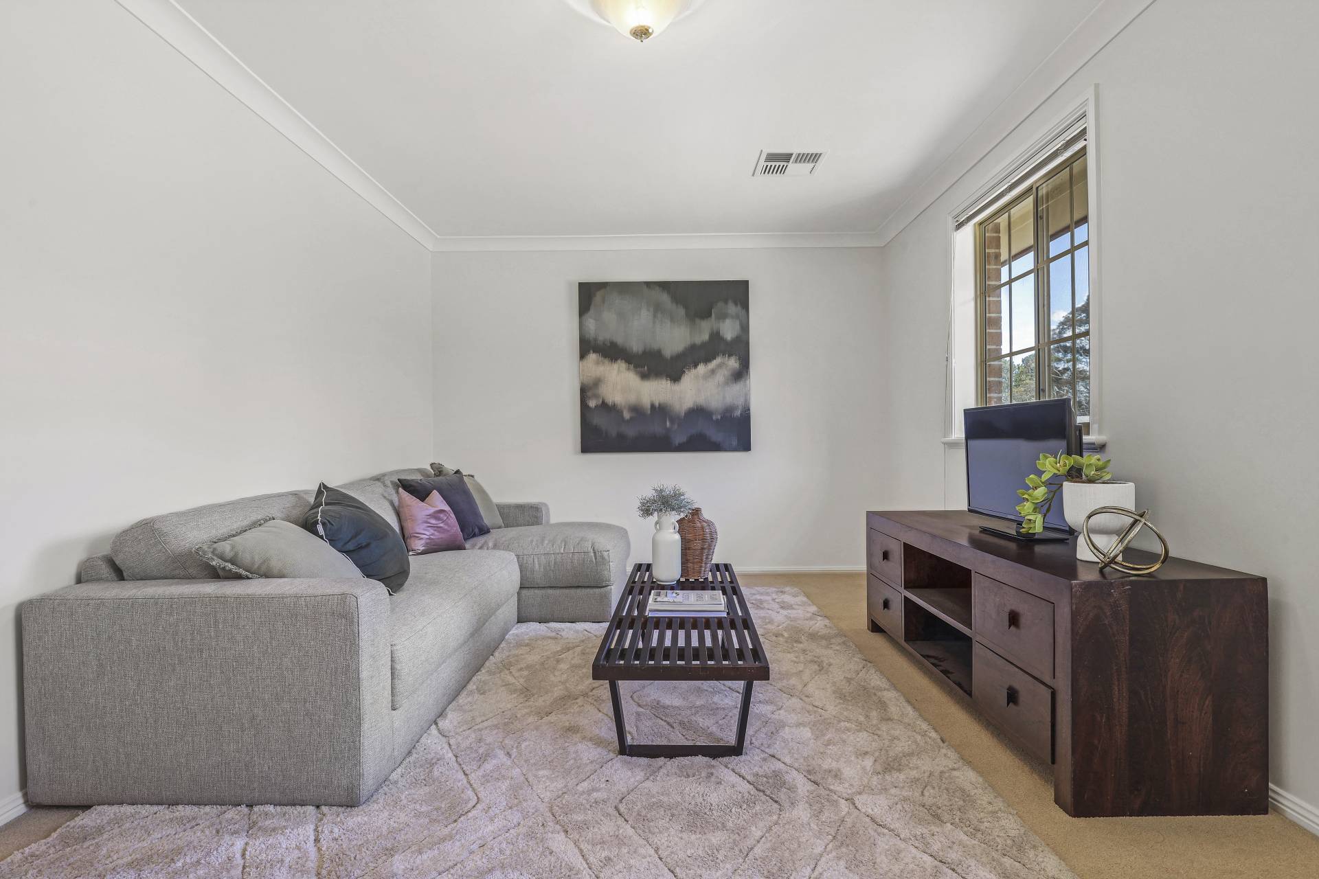 -    Formal living/dining with large windows enjoying a leafy outlook