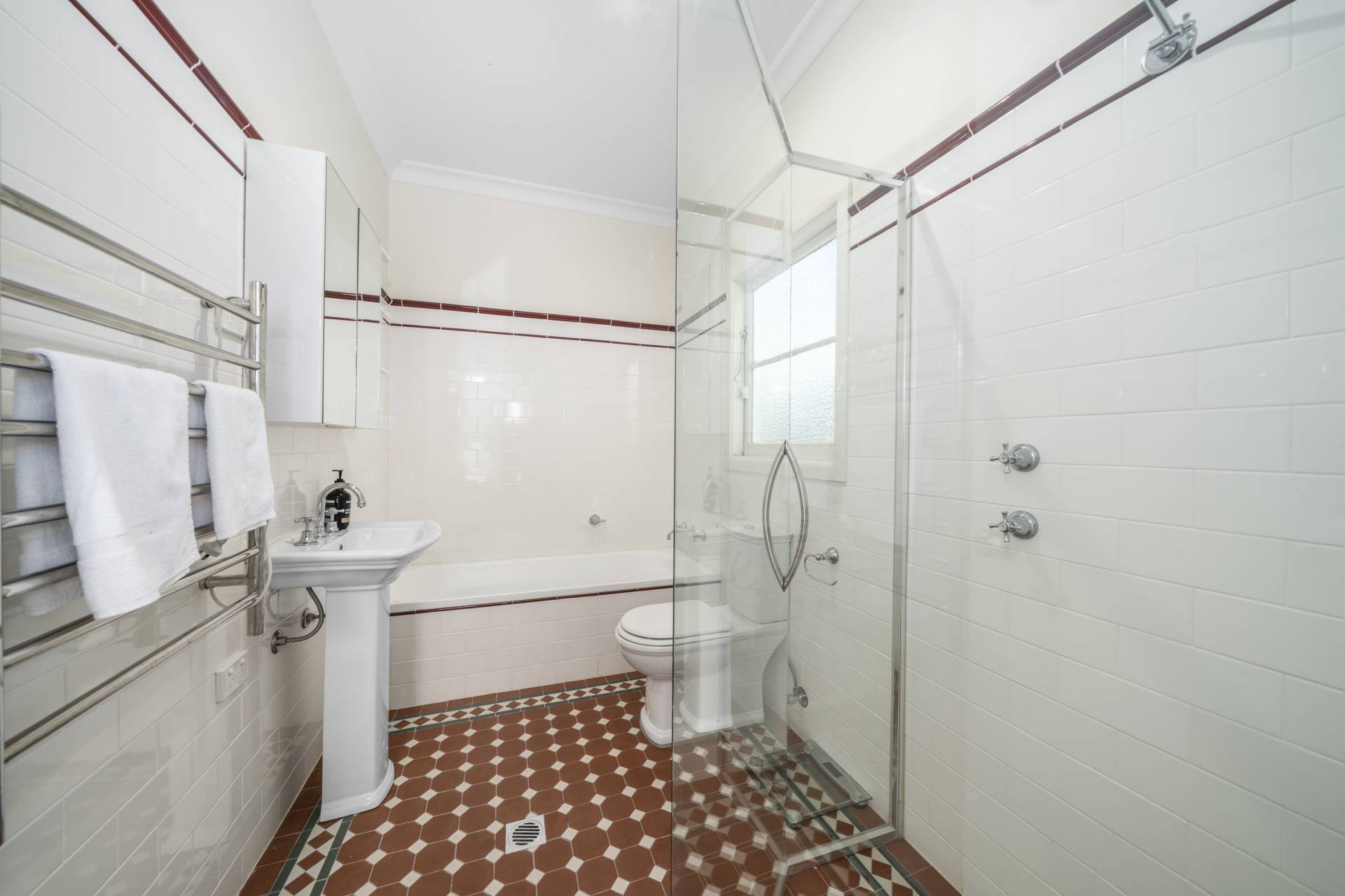 -    Main bedroom benefits from built-in robes, period style en-suite and French doors flowing onto the terrace